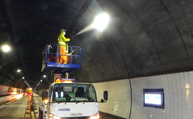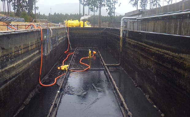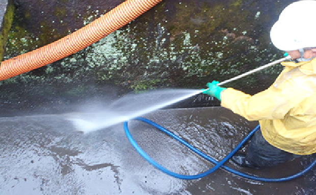 高圧・超高圧洗浄車を使用し、スプレーガン等を装着し洗浄します。