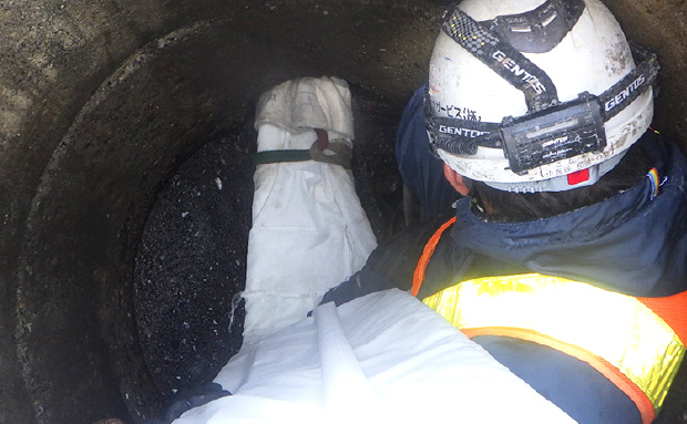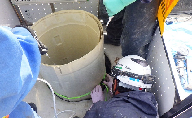 人が中に入り、直接見て判断し、状況を撮影・記録に残します。