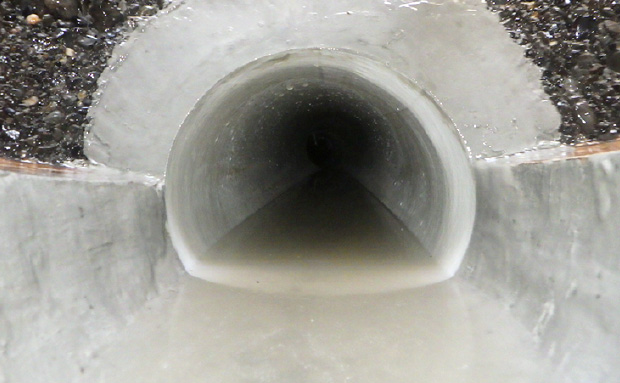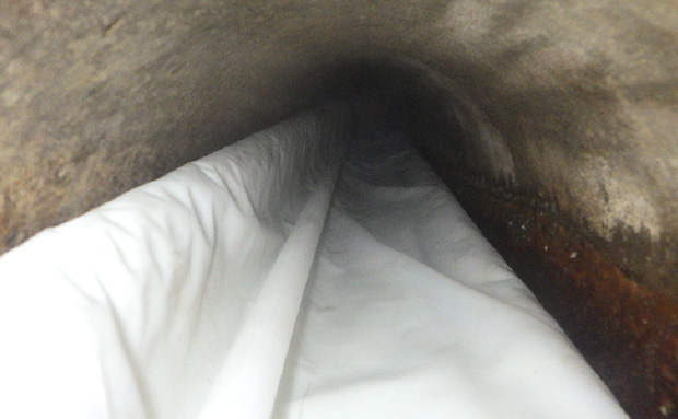 老朽化した下水道管路の中に、工場で生産された自立更生管をそのまま挿入し、充填、管口処理を施す非開削型の管渠更生工法です。