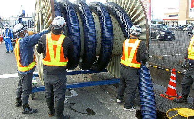 RAKUYU-Z工法は、併用中の下水道関連工事において、周辺環境の衛生面や安全面、本工事の施工性と品質確保、そして自然災害時の応急から復旧までの対応などにおいて、工事に関するすべての方々のニーズに応える不断水水替工法です。