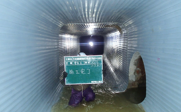 更生材を施工現場で反転や引きこみを行い、加温により硬化反応させて更生管を作る非開削型の管渠更生工法です。