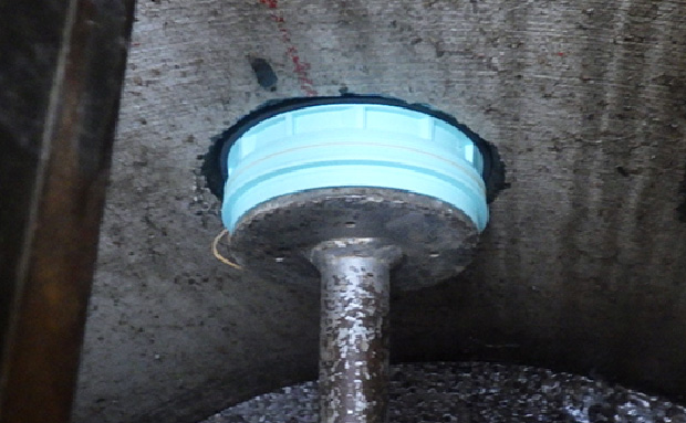フロートレス工法は、専用の取付装置により「消散弁J を設置し、地震時に発生する過剰間隙水圧を瞬時に消散させ、 マンホール周辺地盤の液状化現象を抑え、マンホールの浮上を抑制するものです。