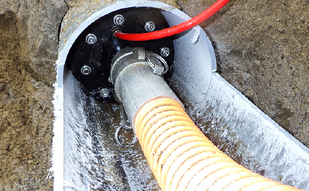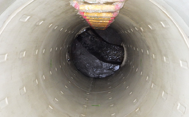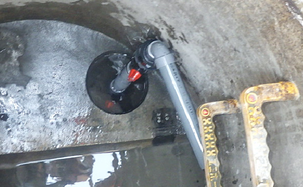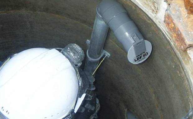 安心マンホール工法は、ろ過器と誘導管で構成された浮上抑制装置をマンホールの本管口に設置することにより、地震によるマンホールの浮上を抑制し、管口の損傷を防止する工法です。