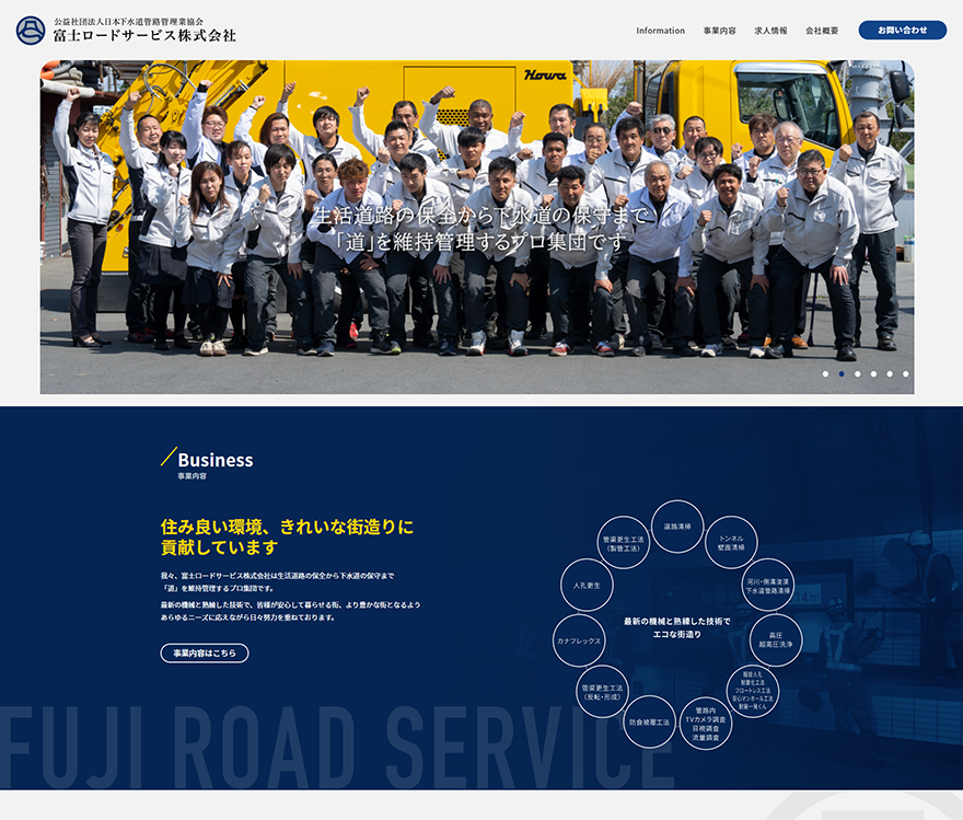 この度、富士ロードサービス株式会社のホームページをリニューアルいたしました。 施設や事業内容をより分かりやすくお伝えできるホームページとなるよう、デザインや構成を改善いたしました。